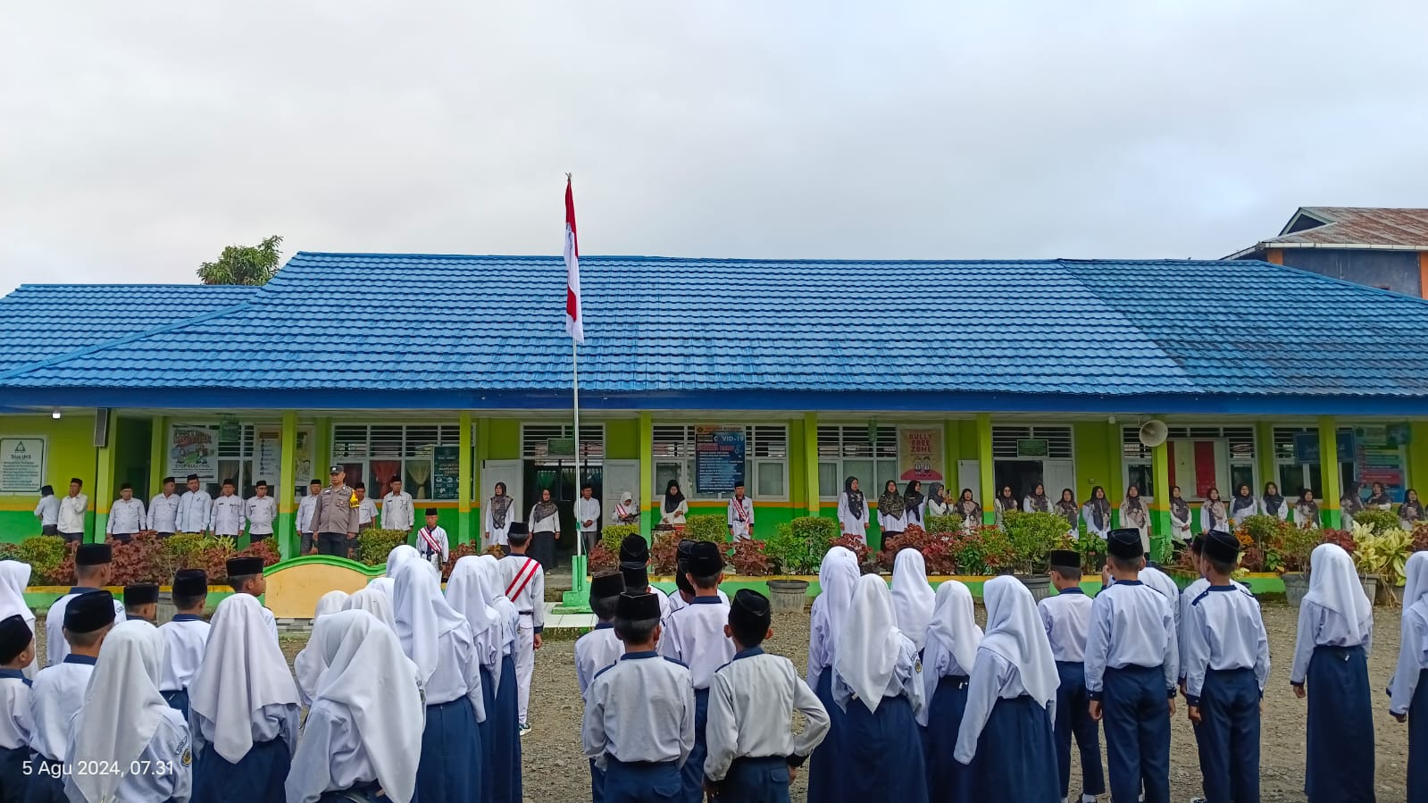 Kerinci, 5 Agustus 2024 – Pada pagi hari ini, upacara bendera di MTsN 1 Kerinci berlangsung khidmat dengan pembina upacara dari Polsek Air Hangat Timur, Bripka Viven Noveza, S.Ap. Kehadiran beliau disambut antusias oleh para siswa, guru, dan staf sekolah.