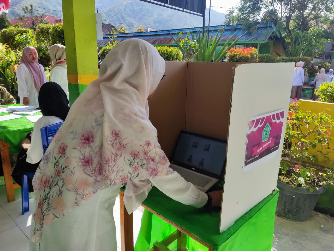 Ketua Panitia Pemilu, Ibu Bela Syarifah, S.Pd, menambahkan bahwa penerapan teknologi ini juga memudahkan penghitungan suara. "Sistem ini tidak hanya mempermudah siswa dalam memilih, tapi juga memudahkan panitia dalam menghitung suara secara transparan dan cepat," jelasnya.