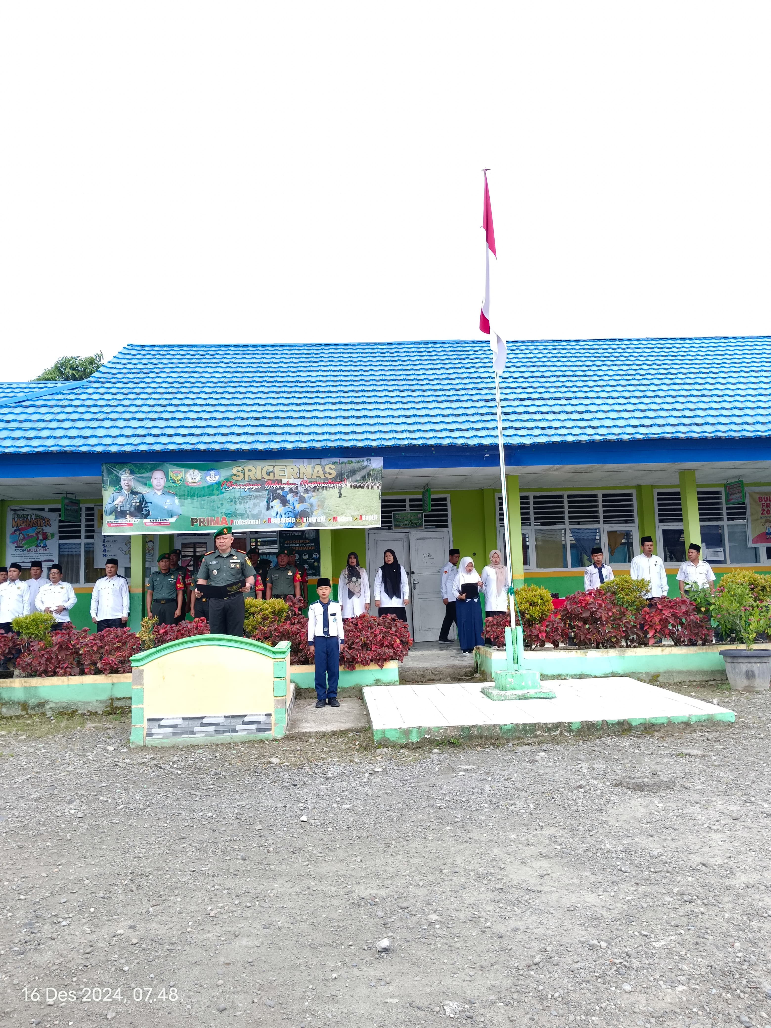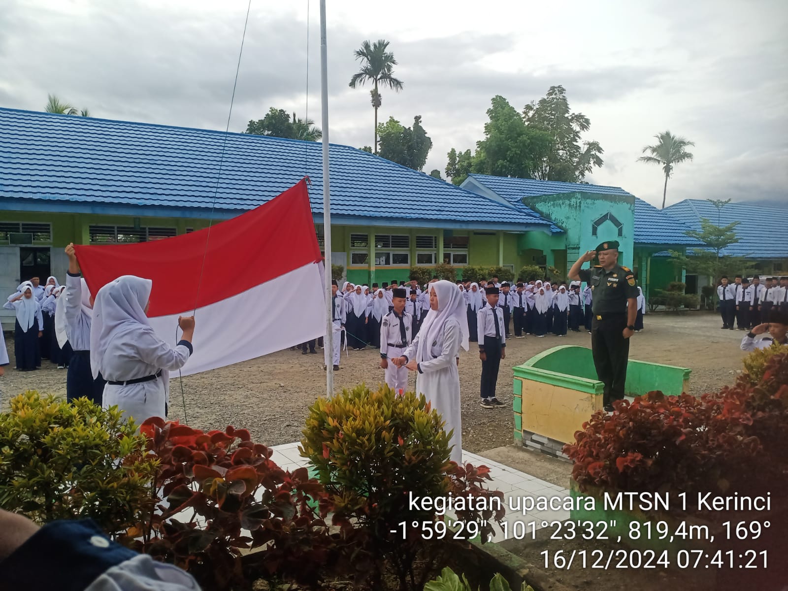 Kemantan, 16 Desember 2024 – MTsN 1 Kerinci menggelar upacara bendera istimewa dengan kehadiran tamu kehormatan dari Koramil 417-03/Air Hangat. Bertindak sebagai pembina upacara adalah Danramil, Kapten Firman, yang turut didampingi oleh Babinsa.