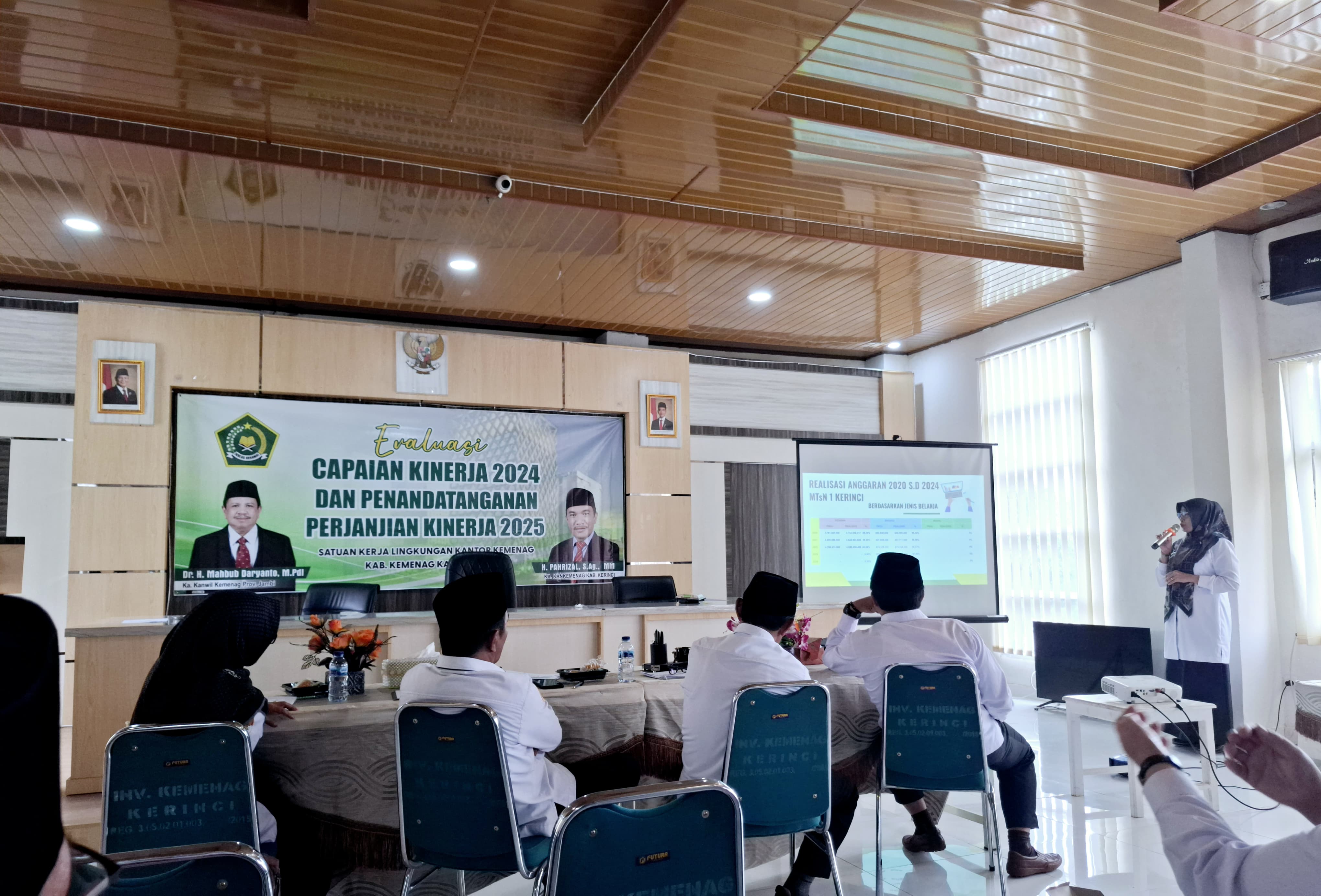 Rabu, 15 Januari 2025, Kepala MTsN 1 Kerinci, Ibu Hasminiyeti, S.Ag., M.Pd., menghadiri kegiatan Evaluasi Capaian Kinerja Tahun 2020-2024 dan Penandatanganan Perjanjian Kinerja Tahun 2025. Acara yang berlangsung di Aula PLHUT Kementerian Agama Kabupaten Kerinci ini dihadiri oleh seluruh kepala satuan kerja di bawah naungan Kementerian Agama Kabupaten Kerinci.