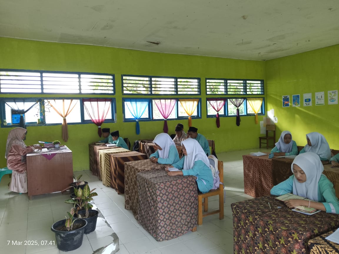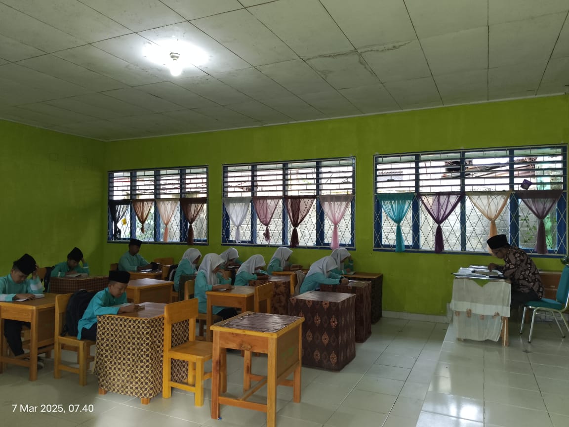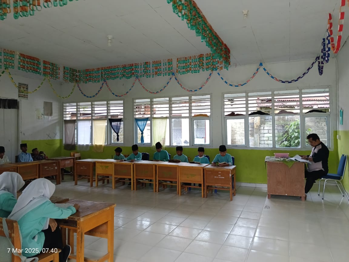 Kerinci, 07 Maret 2025 – Siswa Madrasah Tsanawiyah Negeri (MTsN) 1 Kerinci melaksanakan kegiatan tadarus Al-Qur’an di kelas masing-masing pada hari kedua sebelum memulai proses belajar mengajar (PBM). Kegiatan ini bertujuan untuk meningkatkan keimanan dan ketakwaan siswa serta membiasakan mereka dalam membaca Al-Qur’an setiap hari.