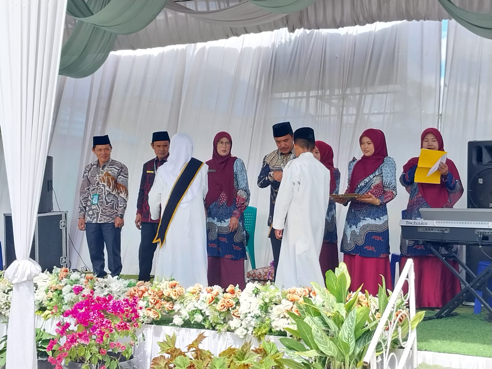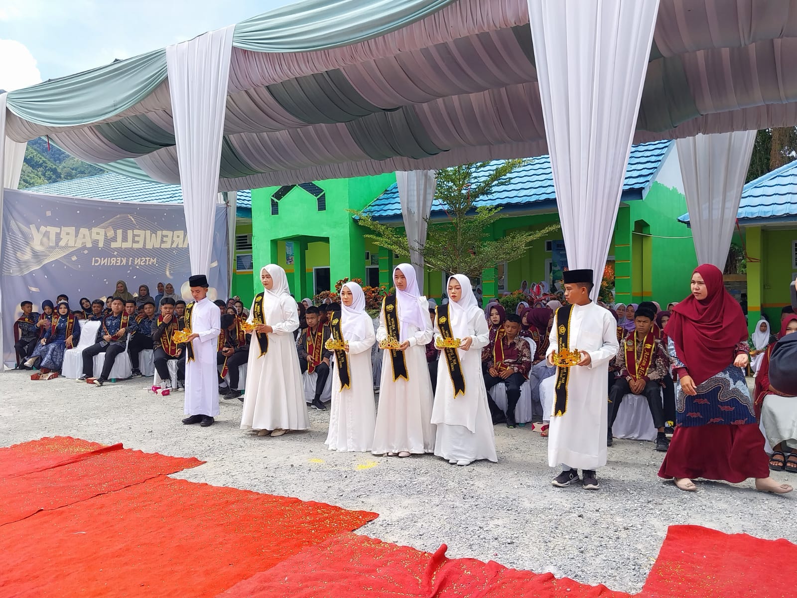 Prosesi wisuda dilakukan secara langsung oleh Kepala Kantor Kementerian Agama Kabupaten Kerinci, Bapak H. Pahrizal, S.Ag., MM, sebagai bentuk apresiasi dan dukungan terhadap program tahfidz yang dijalankan oleh MTsN 1 Kerinci.