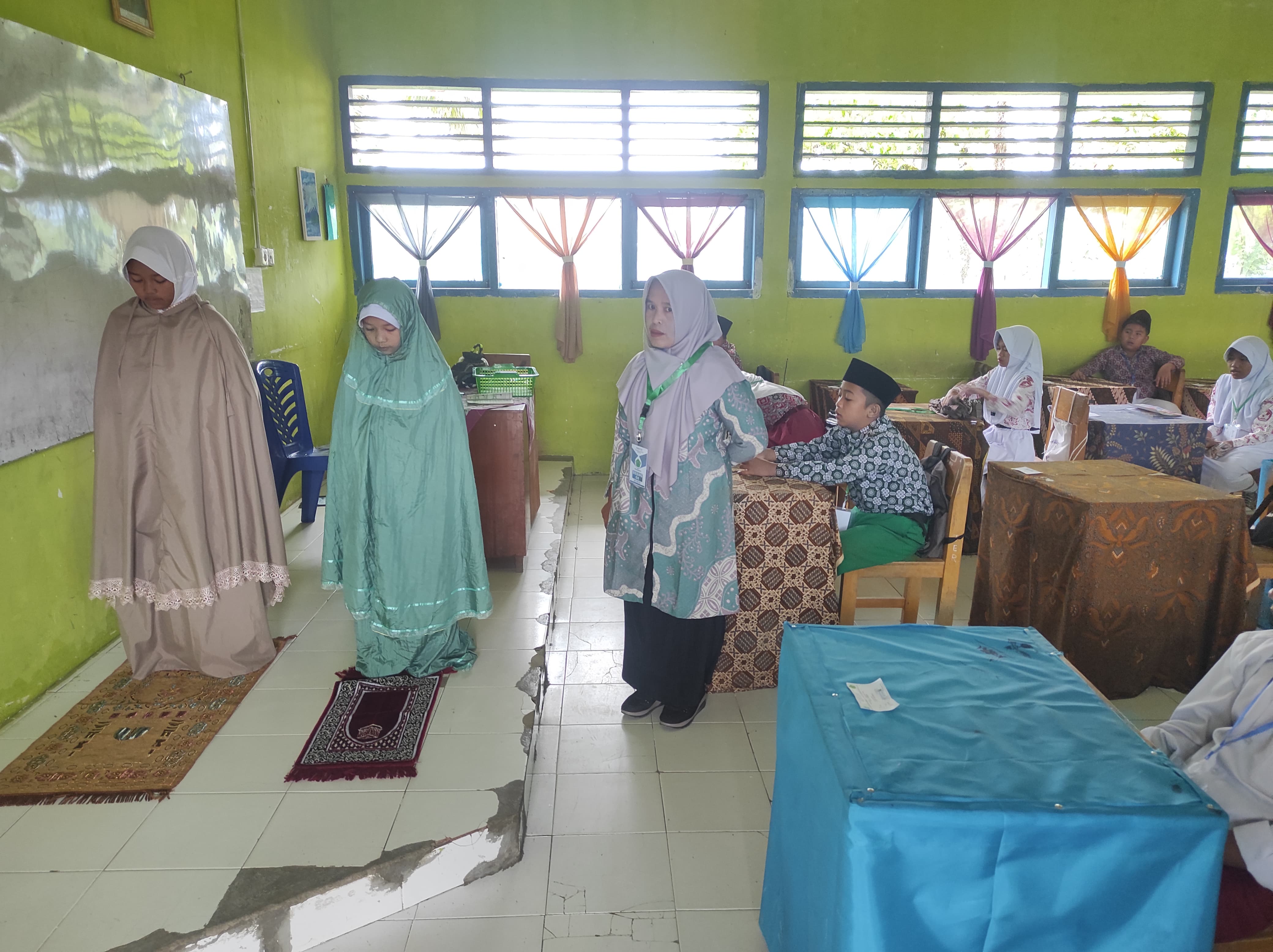 Dengan mengenakan pakaian rapi dan membawa perlengkapan masing-masing, para peserta tampak hadir tepat waktu dan tetap antusias meskipun kondisi cuaca kurang bersahabat. Panitia dan guru-guru pun menyambut kehadiran mereka dengan hangat serta memastikan pelaksanaan tes berjalan tertib dan nyaman di dalam ruangan.