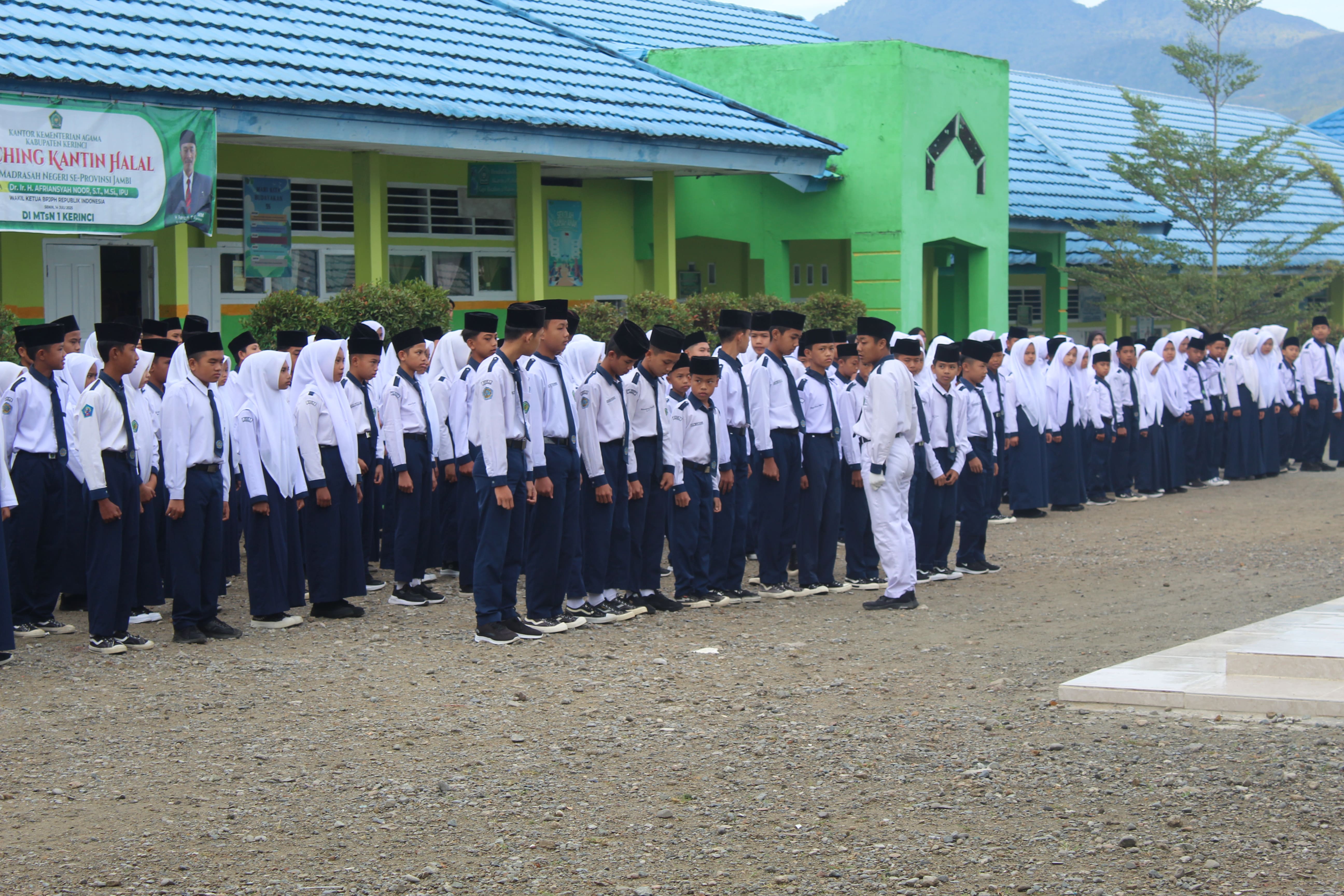 Kemantan – MTsN 1 Kerinci kembali menggelar upacara bendera pada hari ini dengan penuh khidmat. Kegiatan rutin yang dilaksanakan setiap pekan ini diikuti oleh seluruh guru, tenaga kependidikan, dan siswa dengan suasana yang tertib dan disiplin.
