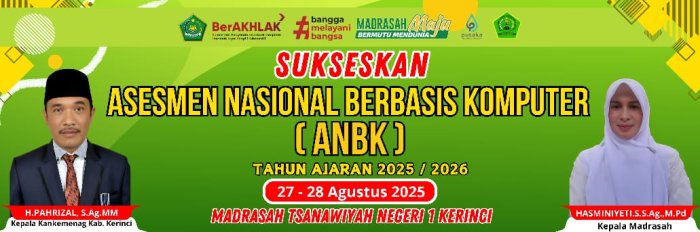 Kerinci, 27 Agustus 2025 — MTsN 1 Kerinci sukses melaksanakan hari pertama Asesmen Nasional Berbasis Komputer (ANBK) tahun 2025. Kegiatan berlangsung di ruang asesmen madrasah dengan penuh ketertiban dan kesiapan dari pihak sekolah maupun peserta didik.