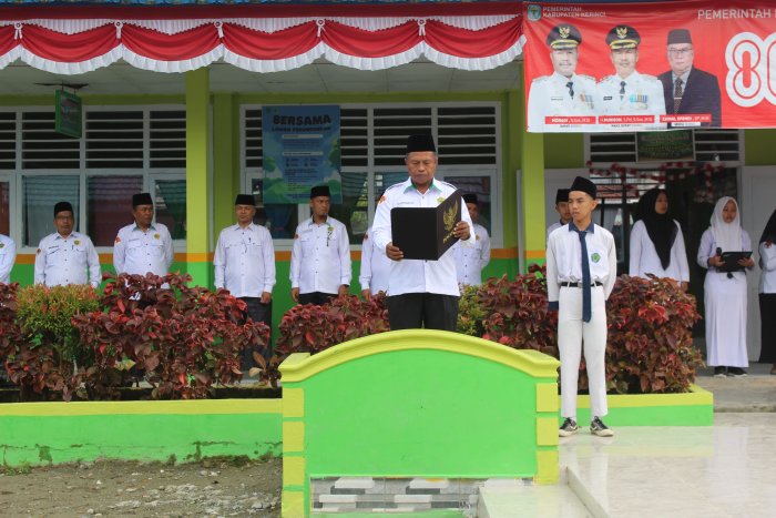 Senin - MTsN 1 Kerinci kembali menyelenggarakan kegiatan rutin Upacara Bendera yang dilaksanakan setiap hari Senin pagi di lapangan utama madrasah. Pada pelaksanaan kali ini, petugas upacara dipercayakan kepada siswa-siswi kelas IX F dengan arahan langsung dari wali kelas, Ibu Zulfadanti, S.Sn.