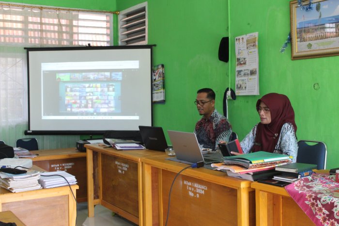 Kerinci 04 September 2025– Guru dan Kepala Madrasah Tsanawiyah Negeri (MTsN) 1 Kerinci mengikuti kegiatan pembinaan yang diselenggarakan secara daring melalui aplikasi Zoom Meeting bersama Kantor Wilayah Kementerian Agama Provinsi Jambi, dengan tema “Pembangunan Karakter Integritas bagi Guru dan Peserta Didik”.