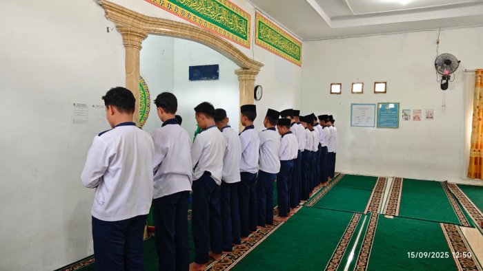 Kemantan , 15 September 2025 � MTsN 1 Kerinci kembali melaksanakan kegiatan shalat berjamaah yang sudah menjadi program rutin turun-temurun di madrasah. Hari ini, giliran siswa kelas 9D dan 8C yang bertugas memimpin serta mengisi rangkaian kegiatan.