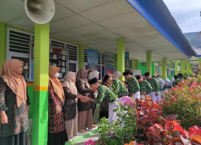 Kerinci, 18 September 2025 – MTsN 1 Kerinci terus menanamkan nilai-nilai karakter kepada seluruh warganya melalui pembiasaan Budaya 5S (Senyum, Salam, Sapa, Sopan, dan Santun) setiap pagi. Kegiatan ini dilaksanakan secara rutin sebelum proses belajar mengajar dimulai.