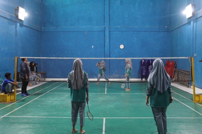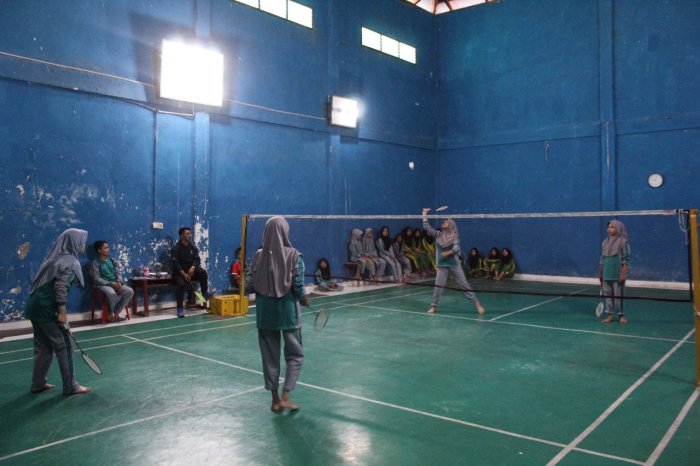 Kemantan — Siswa kelas 7D MTsN 1 Kerinci hari ini mengikuti pembelajaran Pendidikan Jasmani, Olahraga, dan Kesehatan (Penjasorkes) dengan materi “Modifikasi Badminton” yang dilaksanakan di Hall Kemantan Tinggi, Sabtu (20/09).