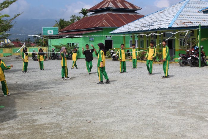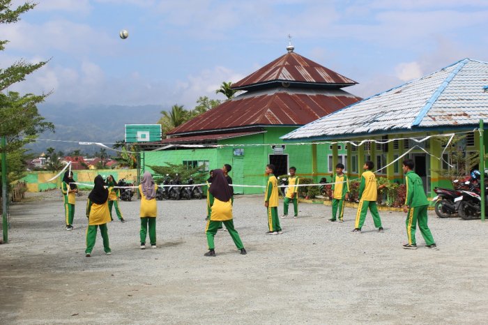 Kerinci – Siswa kelas VIII C MTsN 1 Kerinci melaksanakan kegiatan praktik permainan bola voli dalam pembelajaran Pendidikan Jasmani, Olahraga, dan Kesehatan (Penjasorkes) bersama guru pengampu, Bapak Iqbal Arrahman, S.Pd., M.Pd.,.