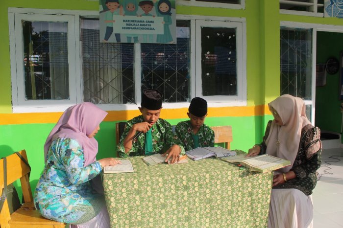Kegiatan yang berlangsung pada pagi hari ini diikuti oleh seluruh siswa madrasah. Para siswa membacakan ayat-ayat suci Al-Qur’an secara bergiliran, baik di dalam kelas maupun di halaman madrasah. Guru pembina turut hadir mendampingi dan membimbing agar pelaksanaan tadarus berjalan tertib dan lancar.