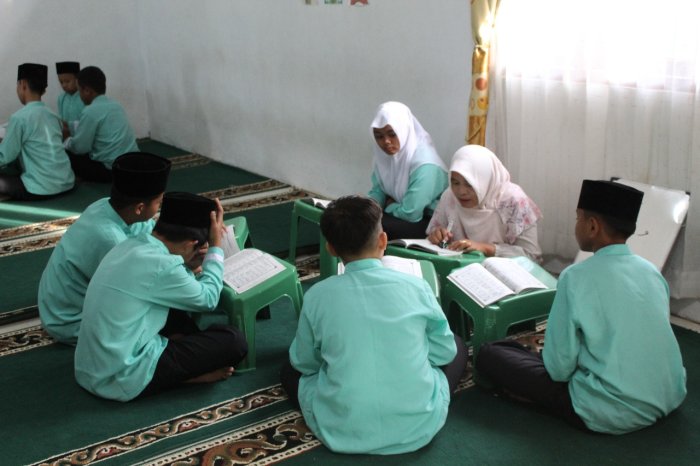 Kerinci, MTsN 1 Kerinci kembali menggelar kegiatan Pembinaan Tahsin Qur'an. Hari ini seluruh firqoh Tahsin melaksanakan bimbingan secara serentak dengan para pembina yang sudah terjadwal.