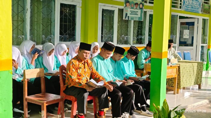 Kemantan , suasana religius kembali menyelimuti halaman MTsN 1 Kerinci saat seluruh siswa, guru, dan tenaga kependidikan melaksanakan kegiatan rutin Yasinan bersama. Kegiatan ini merupakan agenda mingguan yang sudah melekat dalam budaya madrasah untuk memperkuat spiritualitas siswa.
