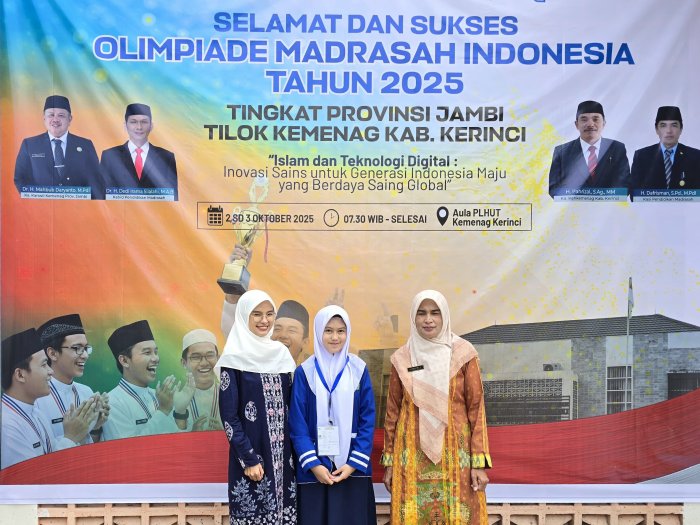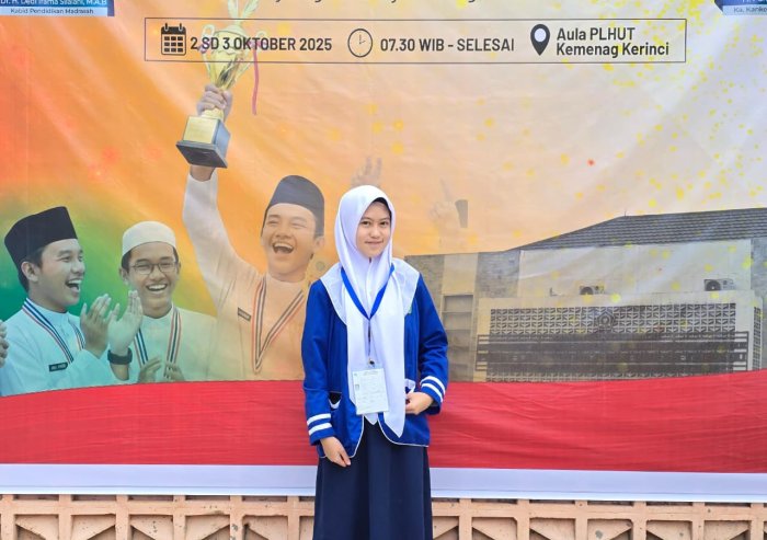Kerinci - siswi MTsN 1 Kerinci, Zahira Maulidia, tampil sebagai salah satu delegasi yang mewakili Kabupaten Kerinci dalam ajang bergengsi Olimpiade Madrasah Indonesia (OMI) Tingkat Provinsi Jambi Tahun 2025.