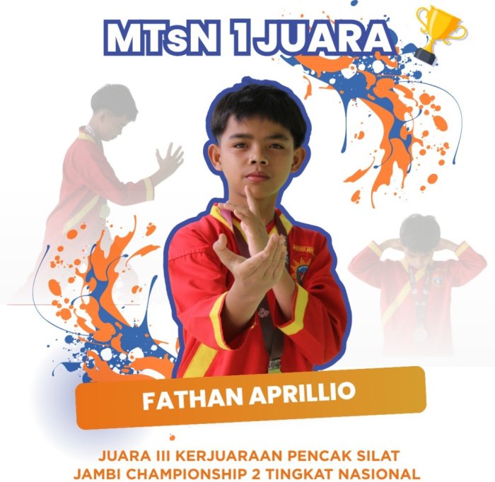 Sementara itu, Fathan Aprillio Adliansyah, siswa kelas VIII MTsN 1 Kerinci, sukses meraih Juara III Kejuaraan Pencak Silat Jambi Championship 2 Tingkat Nasional. Fathan yang berasal dari perguruan Tapak Suci ini telah berulang kali mengharumkan nama madrasah dalam cabang bela diri.