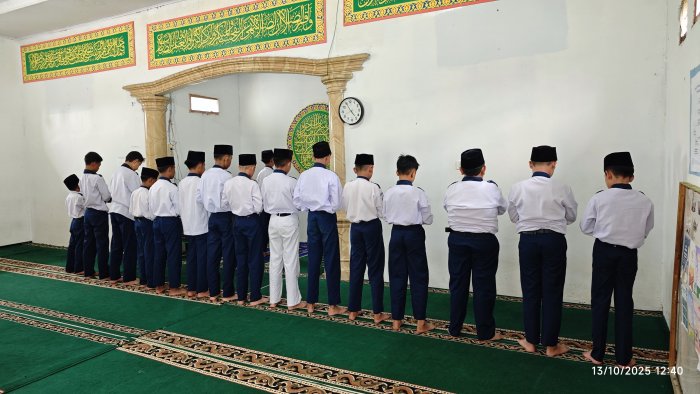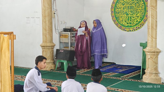 Petugas kegiatan berjalan dengan penuh tanggung jawab. Abizar bertugas sebagai bilal, sementara Nada memandu acara dengan lancar sebagai MC. Alpan Faris tampil tenang dan fasih saat menjadi imam salat, diikuti oleh seluruh jamaah dengan tertib dan khusyuk.