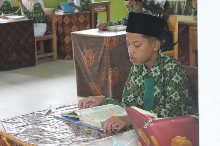 Kemantan - suasana pagi di MTsN 1 Kerinci kembali dipenuhi lantunan ayat suci Al-Qur'an dalam kegiatan tadarus rutin sebelum belajar dimulai. Kegiatan ini merupakan tradisi madrasah yang terus dijaga sebagai bagian dari pembinaan karakter religius siswa.
