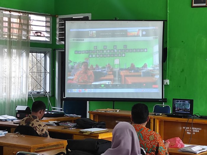 Kegiatan ini diikuti oleh Kepala KUA, para Pengawas Madrasah, Kepala Madrasah, serta seluruh pegawai di bawah naungan Kemenag Kerinci, termasuk dari MTsN 1 Kerinci yang turut berpartisipasi secara aktif dari ruang guru madrasah.