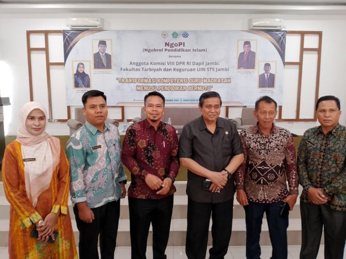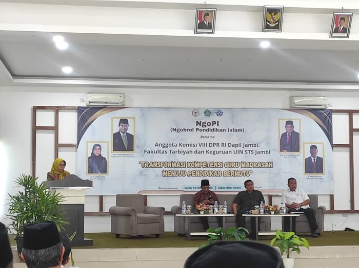 Sungai Penuh, 16 Oktober 2025 - Jajaran Kementerian Agama Kabupaten Kerinci yang terdiri dari para pengawas madrasah,Kepala madrasah serta guru-guru dan operator dari berbagai satuan pendidikan mengikuti kegiatan NgoPI (Ngobrol Pendidikan Islam) bersama Komisi VIII DPR RI Dapil Jambi dan Fakultas Tarbiyah dan Keguruan UIN STS Jambi.
