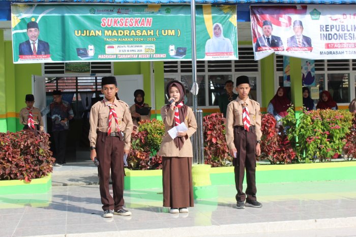 Kerinci, 16 Oktober 2025 — MTsN 1 Kerinci kembali dipenuhi semangat dan antusiasme para siswanya dalam kegiatan perlombaan kultum tiga bahasa (Indonesia, Arab, dan Inggris) yang digelar oleh mahasiswa Pengenalan Lapangan Persekolahan (PLP) IAIN Kerinci. Kegiatan ini merupakan salah satu program kerja mahasiswa PLP yang bertujuan untuk mengasah kemampuan berbicara dan kepercayaan diri siswa di depan umum.