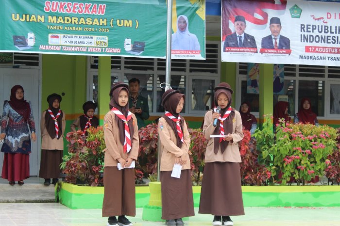 Kemantan — Suasana pagi di halaman MTsN 1 Kerinci dipenuhi antusiasme ketika giliran kelas 9D tampil dalam ajang Lomba Kultum Tiga Bahasa. Dengan penuh keyakinan dan penguasaan materi yang baik, para peserta menyampaikan kultum dalam bahasa Indonesia, Arab, dan Inggris secara bergantian.