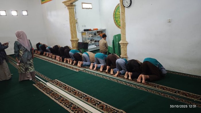 Kemantan 30 Oktober 2025 — Dalam rangka membiasakan siswa untuk disiplin dan cinta terhadap ibadah, MTsN 1 Kerinci kembali melaksanakan kegiatan shalat berjamaah yang bertempat di Mushalla Baitul Ilmi. Kegiatan ini diikuti oleh siswa-siswi kelas VII B dan VIII D, serta didampingi langsung oleh guru pembina.