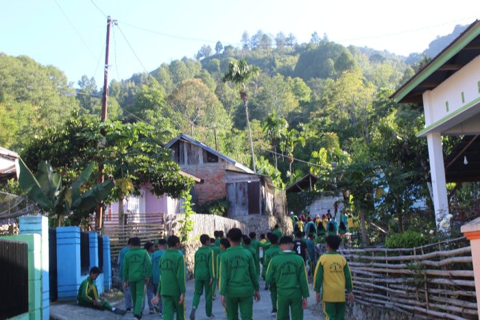 Kegiatan dimulai dari halaman madrasah sekitar pukul 07.30 WIB, diikuti oleh seluruh siswa, bapak dan ibu guru, serta mahasiswa PLP IAIN Kerinci yang sedang melaksanakan praktik di madrasah. Dengan berpakaian olahraga hijau-kuning khas MTsN 1 Kerinci, para peserta tampak berbaris rapi dan penuh semangat memulai perjalanan menuju Bendungan Desa Kemantan.