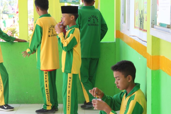Kemantan — Suasana santai dan penuh tawa tampak menghiasi lingkungan MTsN 1 Kerinci saat jam istirahat tiba. Setelah mengikuti pelajaran pagi yang cukup padat, para siswa menikmati waktu rehat dengan bercengkerama dan menikmati jajanan ringan bersama teman-teman di depan kelas.