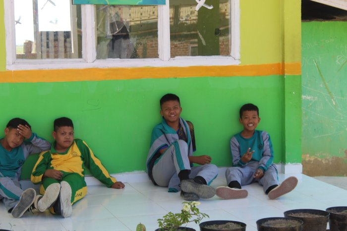 Beberapa siswa terlihat duduk santai di teras kelas sambil tertawa lepas, sementara yang lain tampak asyik menikmati makanan dan minuman favoritnya. Tak sedikit pula yang memanfaatkan momen ini untuk berfoto dan bersenda gurau, menciptakan suasana yang akrab dan penuh kebersamaan.
