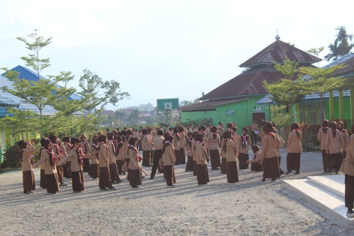 Suasana halaman madrasah pun terasa hidup. Canda tawa dan semangat para peserta menambah kecerian dan kekompakan