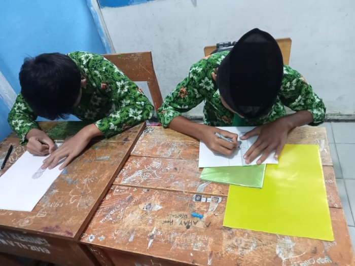Para siswa terlihat antusias selama kegiatan berlangsung. Mereka bekerja sama dalam kelompok kecil, saling membantu dalam menggunting, melipat, dan merekatkan setiap sisi kubus agar hasilnya rapi dan proporsional.