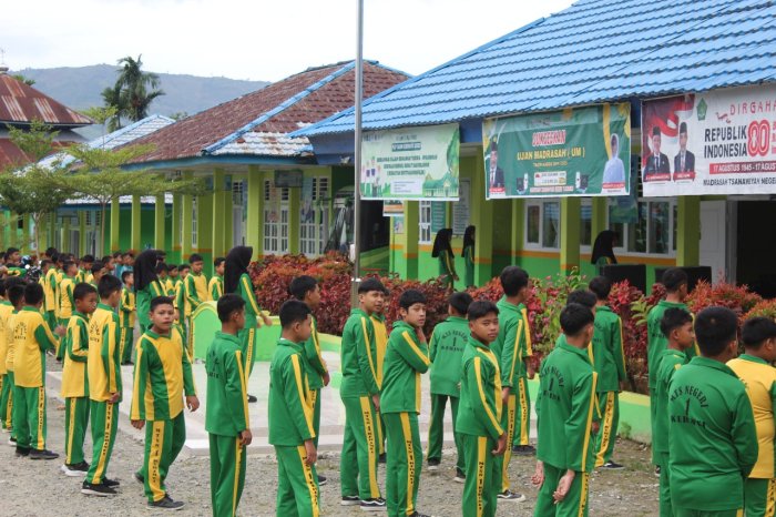 Dengan mengenakan seragam olahraga berwarna hijau kuning khas MTsN 1 Kerinci, para siswa mengikuti gerakan senam dengan penuh antusias dan kompak. Lantunan musik senam menambah semangat mereka untuk bergerak aktif dan ceria.