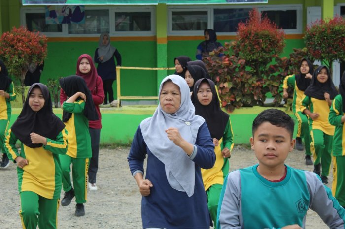 Kemantan — Tidak hanya siswa, para guru MTsN 1 Kerinci juga tampil penuh semangat dalam kegiatan Senam Sabtu Sehat yang digelar di halaman madrasah. Dengan pakaian santai dan wajah ceria, para pendidik ikut bergerak mengikuti irama musik senam yang energik.
