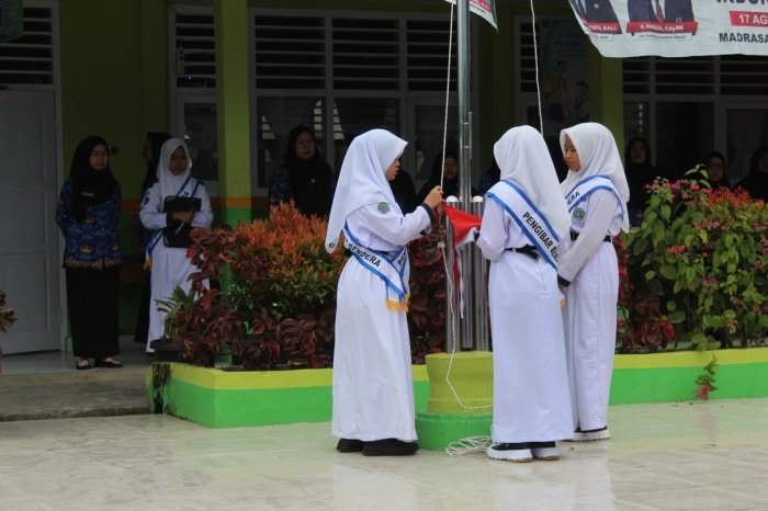 Upacara dimulai pukul 07.30 WIB di halaman madrasah dengan pengibaran bendera Merah Putih yang berlangsung khidmat. Seluruh peserta berdiri tegap, menyanyikan lagu Indonesia Raya dengan penuh semangat. Petugas upacara yang terdiri dari siswa-siswi pilihan melaksanakan tugasnya dengan baik dan penuh tanggung jawab.