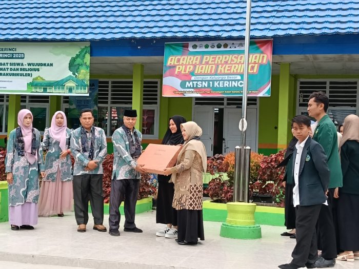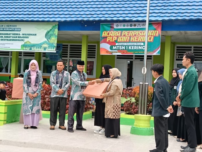 Kerinci, Suasana haru dan penuh kehangatan menyelimuti MTsN 1 Kerinci saat para mahasiswa pengenalan lingkungan Persekolahan (PLP) dari IAIN Kerinci resmi mengakhiri masa pengabdian mereka, Rabu 12 November 2025. Dalam momen perpisahan tersebut, mahasiswa PLP menyerahkan kenang-kenangan kepada pihak madrasah dan Musholla Nurul Ilmi sebagai bentuk rasa terima kasih atas bimbingan dan pengalaman berharga yang telah mereka peroleh selama kegiatan berlangsung.