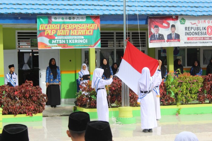 Kegiatan upacara bendera di MTsN 1 Kerinci pada hari ini berlangsung khidmat dan tertib. Petugas upacara dari kelas 7 E tampil dengan penuh tanggung jawab di bawah bimbingan wali kelas, Ibu Rati Metrina, S.Pd. Seluruh rangkaian kegiatan berjalan lancar dari awal hingga akhir.