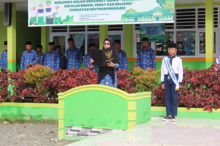 Upacara bendera di MTsN 1 Kerinci pada hari ini berlangsung dengan khidmat dan penuh makna. Bertindak sebagai pembina upacara, Ibu Rifnaini Sofyanasari, M.Pd menyampaikan amanat dengan tema “Man Jadda Wa Jadda.”