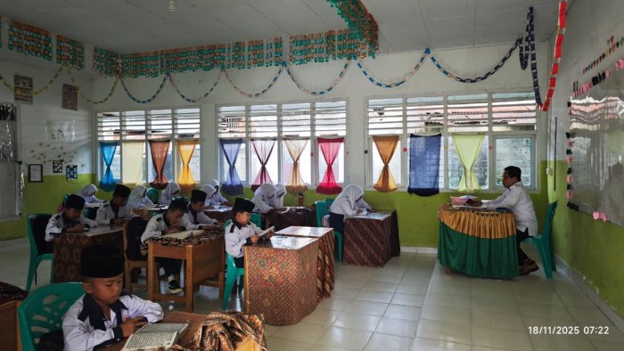 Pagi hari di MTsN 1 Kerinci kembali diwarnai dengan suasana penuh kedamaian melalui kegiatan tadarus Al-Qur'an yang dilaksanakan di masing-masing kelas. Sejak bel masuk berbunyi, para siswa telah duduk rapi di bangku mereka, membuka mushaf, dan memulai hari dengan lantunan ayat suci yang menentramkan hati.