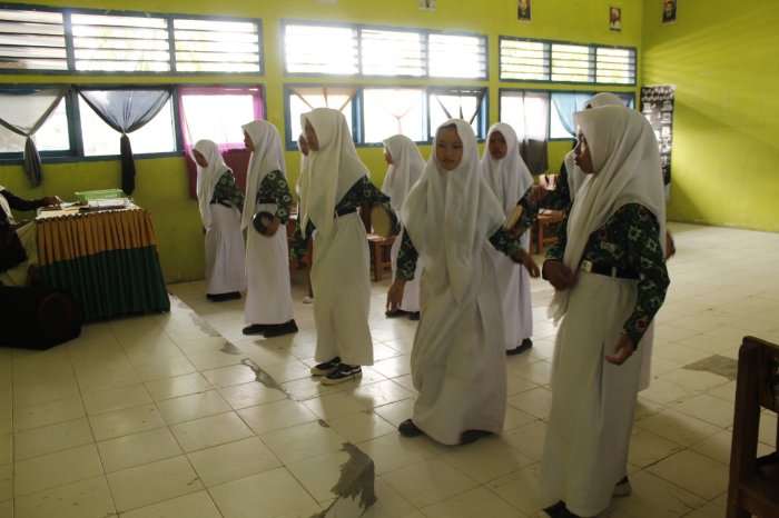 Di awal pembelajaran, Ibu Bela menjelaskan asal-usul tari Rangguk serta makna gerakan yang terkandung di dalamnya. Setelah penjelasan teori, siswa mulai mempraktikkan gerakan dasar secara berkelompok. Suasana kelas tampak hidup dan semangat, dengan siswa yang saling bekerja sama mengikuti arahan guru.