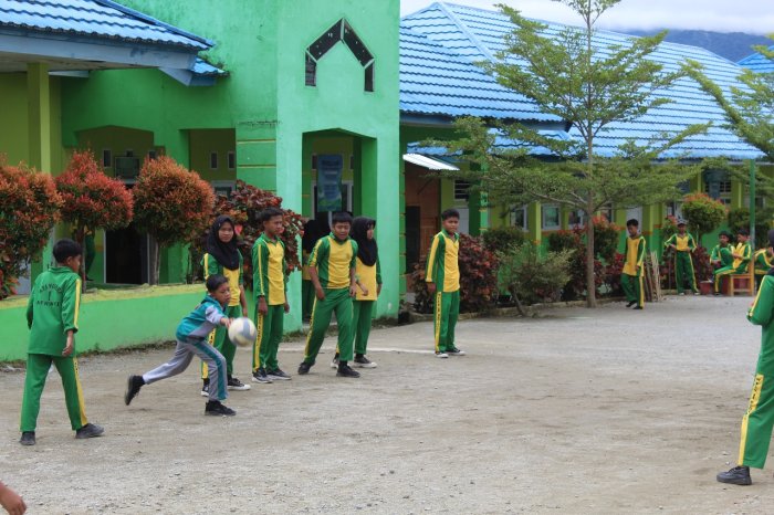 Dengan penuh antusias, para siswa saling bekerja sama, berlari, dan mengatur strategi sederhana untuk memenangkan permainan. Sorak-sorai dan gelak tawa terdengar di sepanjang kegiatan, menambah keseruan suasana istirahat yang biasanya singkat namun dimanfaatkan secara maksimal.