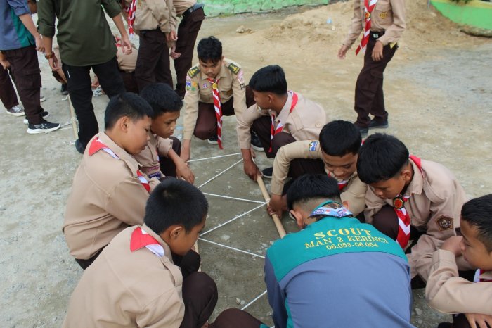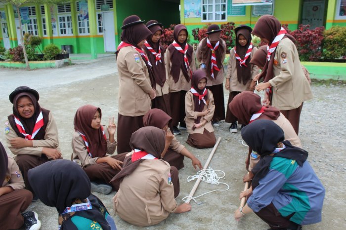 Kegiatan Pramuka di MTsN 1 Kerinci kembali berlangsung penuh semangat dan kedisiplinan. Dalam pertemuan latihan kali ini, para Penegak bersama Pembina Pramuka turun langsung mendampingi adik-adik Penggalang dalam praktik tali-temali, khususnya materi simpul dan ikatan yang menjadi keterampilan dasar penting dalam kepramukaan.