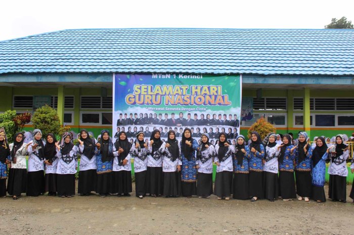 Dengan peringatan Hari Guru Nasional tahun ini, MTsN 1 Kerinci berharap hubungan antara guru dan siswa semakin harmonis serta mampu menciptakan lingkungan belajar yang lebih baik dan inspiratif.
