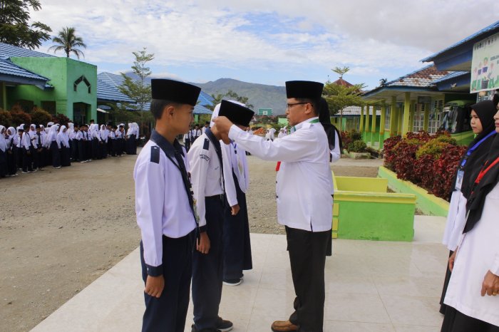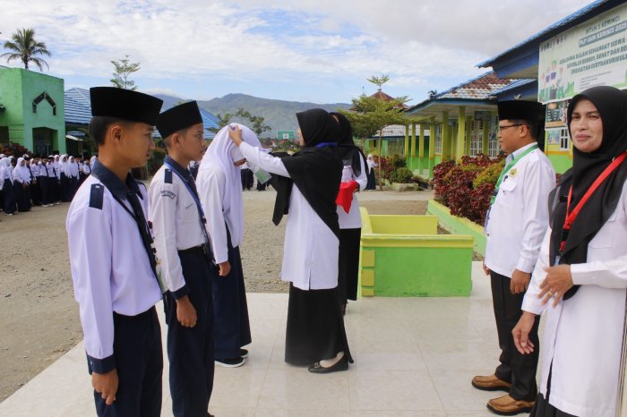 MTsN 1 Kerinci - Suasana penuh khidmat menyelimuti madrasah saat pelaksanaan ujian semester resmi dimulai pada pagi hari ini. Sebagai tanda dan simbol dimulainya rangkaian ujian, panitia menggelar prosesi pengalungan nomor ujian kepada perwakilan siswa, sebuah tradisi sederhana namun sarat makna.