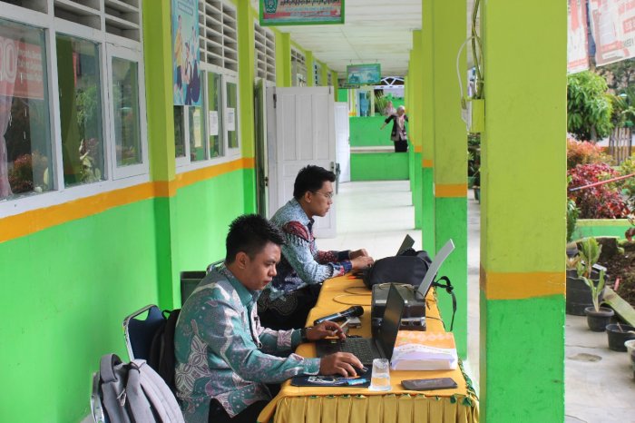 Sejak pagi, tim operator MTsN 1 Kerinci telah berada di lokasi untuk memastikan seluruh perangkat, mulai dari komputer, jaringan internet, hingga aplikasi ujian, berfungsi dengan baik. Mereka melakukan pengecekan sistem, pendataan peserta, serta pendampingan teknis bagi pengawas dan siswa.
