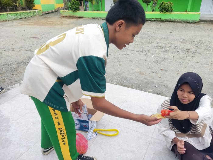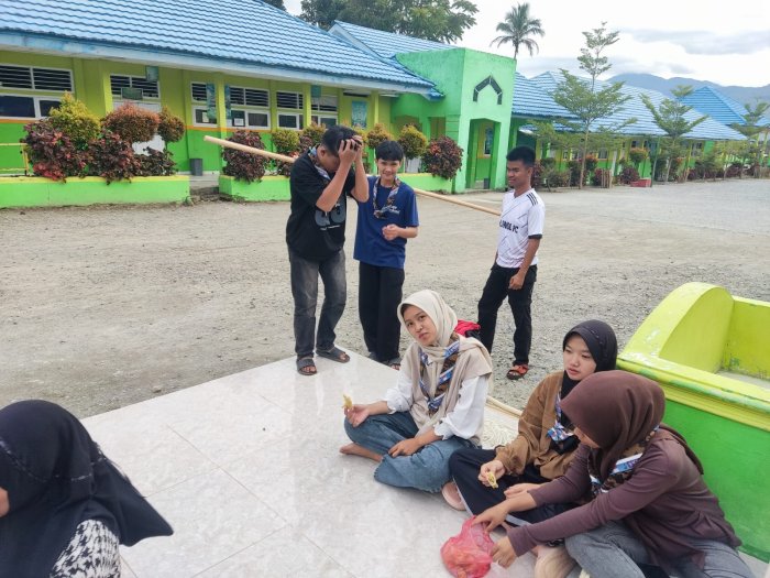 Setelah menyelesaikan latihan persiapan Jambore di lingkungan madrasah, para anggota Jambore MTsN 1 Kerinci terlihat berkumpul santai sambil menikmati makanan ringan. Suasana yang tercipta tampak akrab dan penuh kekompakan. Para peserta duduk melingkar bersama pembina dan kakak pelatih untuk melakukan evaluasi hasil latihan yang telah dilaksanakan hari itu.