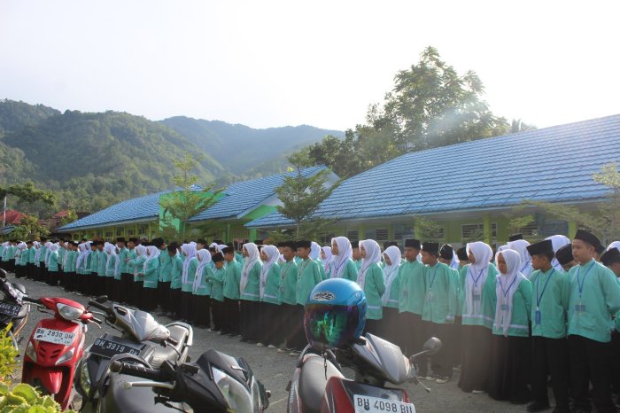 Jumat pagi ini, seluruh siswa MTsN 1 Kerinci yang sedang melaksanakan Asesmen Sumatif Akhir Semester Ganjil berkumpul di lapangan untuk mendengarkan pengarahan singkat sebelum memasuki ruang ujian. Dengan berbaris rapi dan tertib, para siswa menyimak penjelasan mengenai pelaksanaan sistem kokurikulum yang akan dimulai pada Senin hingga Sabtu mendatang.