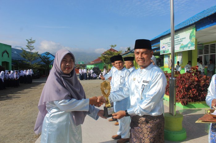 MTsN 1 Kerinci menerima penyerahan trofi Juara Lomba Cerdas Cermat (LCC) dan Kultum tingkat Madrasah Tsanawiyah (MTs) se-Kabupaten Kerinci dalam rangka memperingati Hari Amal Bakti (HAB) ke-80 Kementerian Agama. Kegiatan ini menjadi momen penuh kebanggaan bagi seluruh warga madrasah atas prestasi yang berhasil diraih.