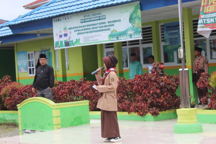 MTsN 1 Kerinci kembali melaksanakan kegiatan rutin Kultum Kamis yang berlangsung di halaman madrasah, hari ini. Kegiatan kultum kali ini disampaikan oleh Amira, salah satu siswi MTsN 1 Kerinci, dengan mengangkat tema “Budaya Sopan Santun sebagai Siswa Madrasah.”