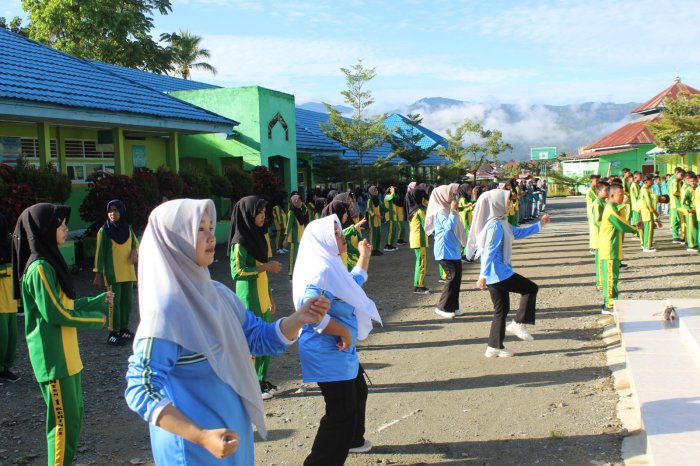 Kerinci – MTsN 1 Kerinci kembali menggelar kegiatan Sabtu Sehat Senam Bersama pada Sabtu pagi. Kegiatan ini diikuti oleh seluruh Pendidik dan Tenaga Kependidikan (PTK) serta seluruh siswa, dengan penuh semangat dan kebersamaan di halaman madrasah.